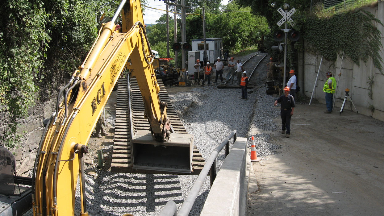 Utility relocation at the Mill Street grade crossing (south end of tunnel).